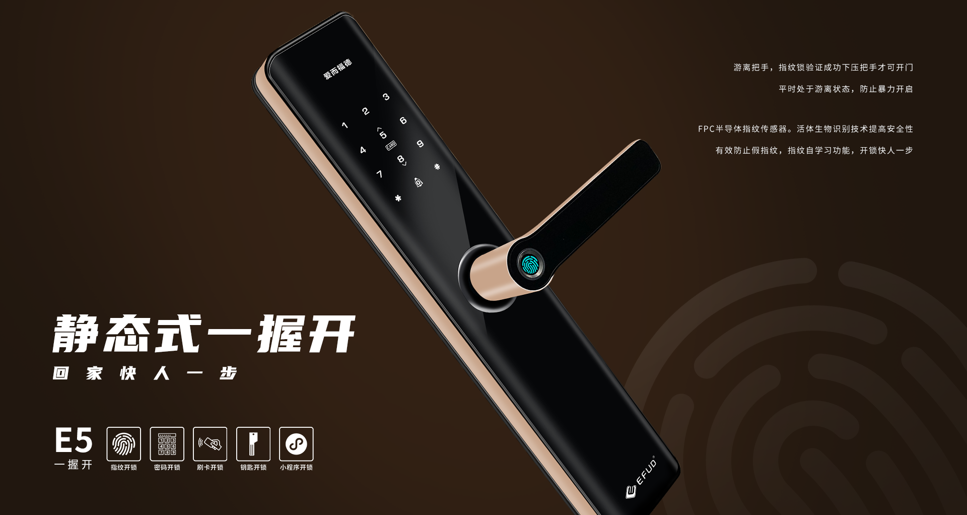 中山市愛(ài)而福德電子科技有限公司專注家用智能鎖25年,是一家集產(chǎn)品研發(fā)、制造、銷售、售后于一體全產(chǎn)業(yè)鏈的國(guó)家高新技術(shù)企業(yè)。公司擁有現(xiàn)代化生產(chǎn)基地8500平方米,具備35000把/月的生產(chǎn)規(guī)模及一支十多年專業(yè)的研發(fā)團(tuán)隊(duì),產(chǎn)品均擁有100%自主知識(shí)產(chǎn)權(quán)。公司一直秉承“創(chuàng)新智造,工匠精神”,為每一位用戶提供智能、便捷、安全的高品質(zhì)生活!